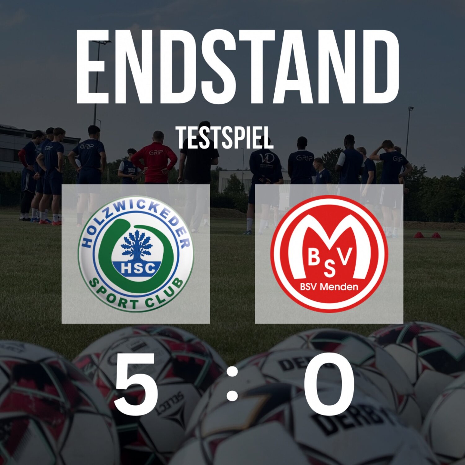In einem gutklassigen Testspiel siegte der Westfalenliga-Vierte gegen den Landesliga-Elften BSV Menden klar mit 5 : 0. Der Sieg hätte bei konsequenter Ausnutzung der Chancen sogar noch höher ausfallen können. Der Gast überzeugte nur in den ersten fünf Minuten, als man Holzwickede früh attackierte und einige sehenswerte Spielzüge zeigte.